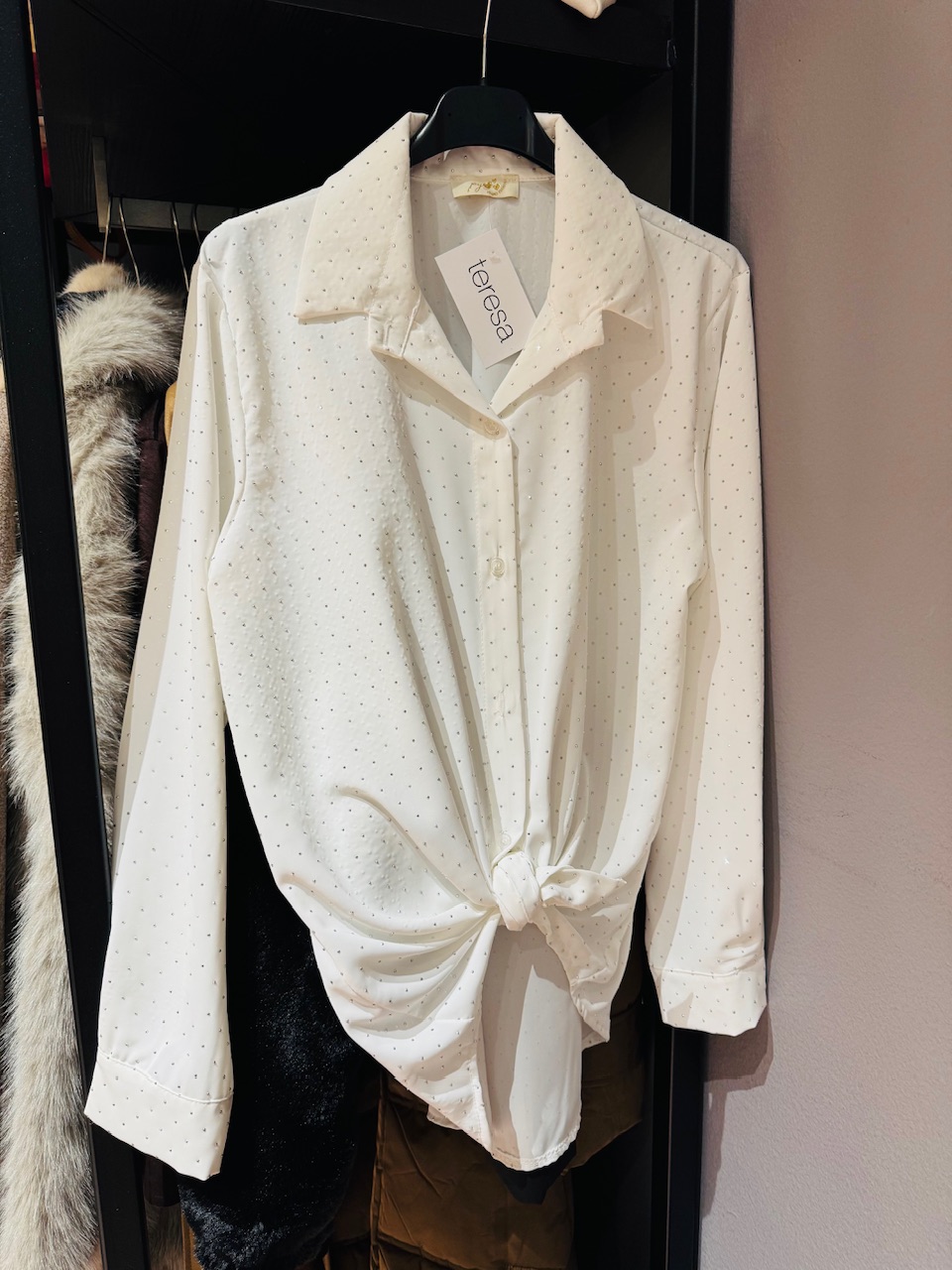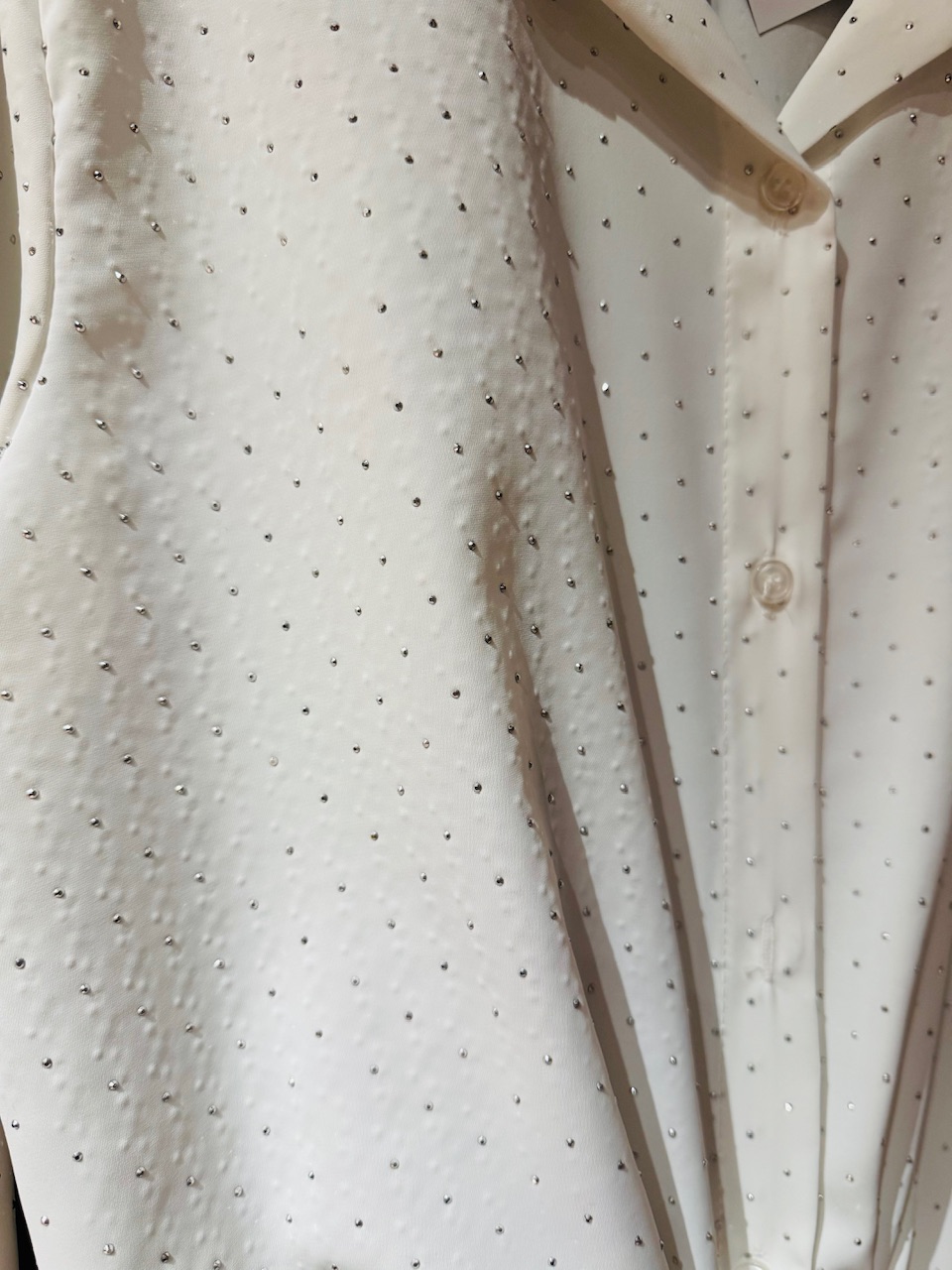 Lahkotna bluzica z gumbi in kamenčki, obseg čez prsi je 100cm.