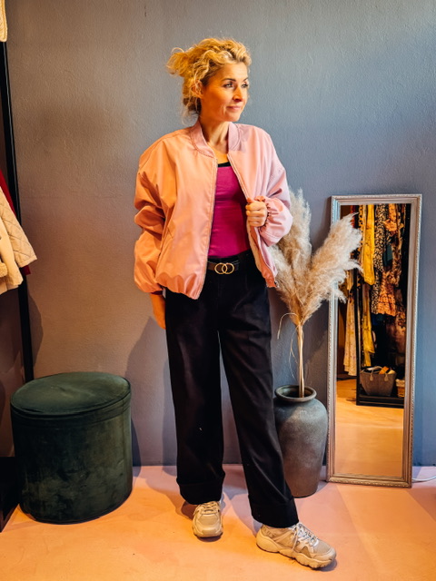 Bomber jakna z zadrgo in žepi.