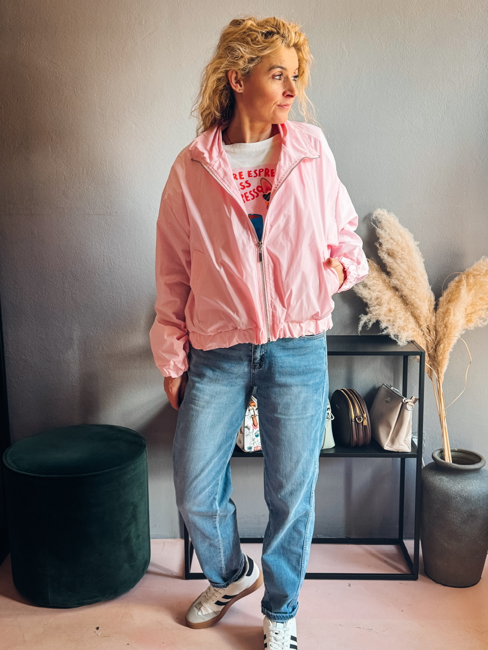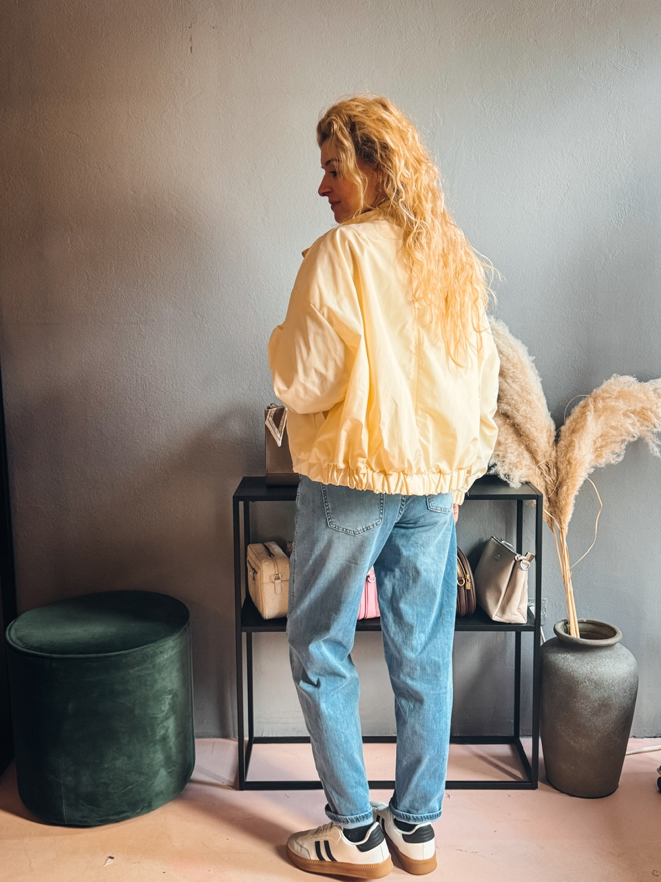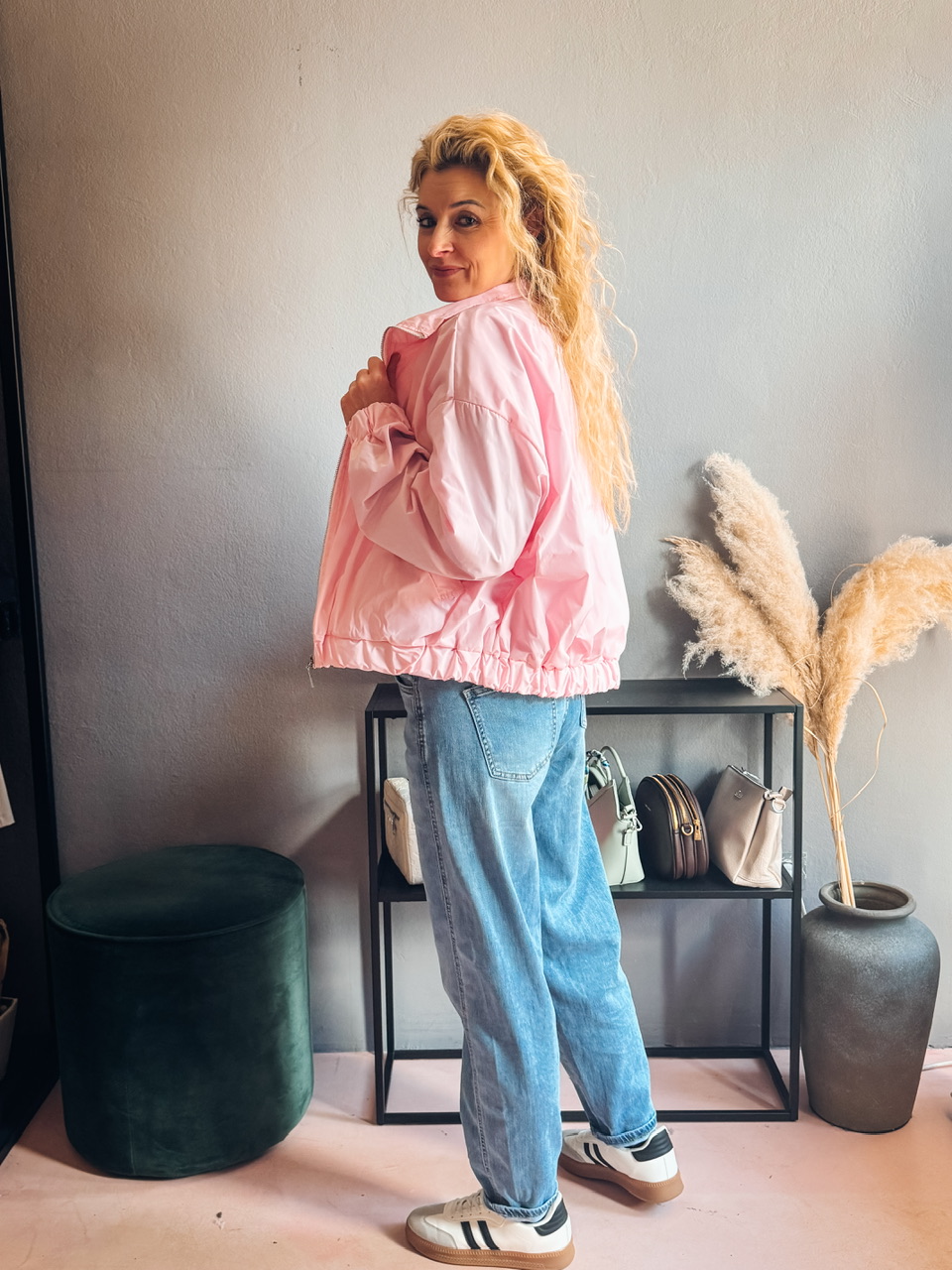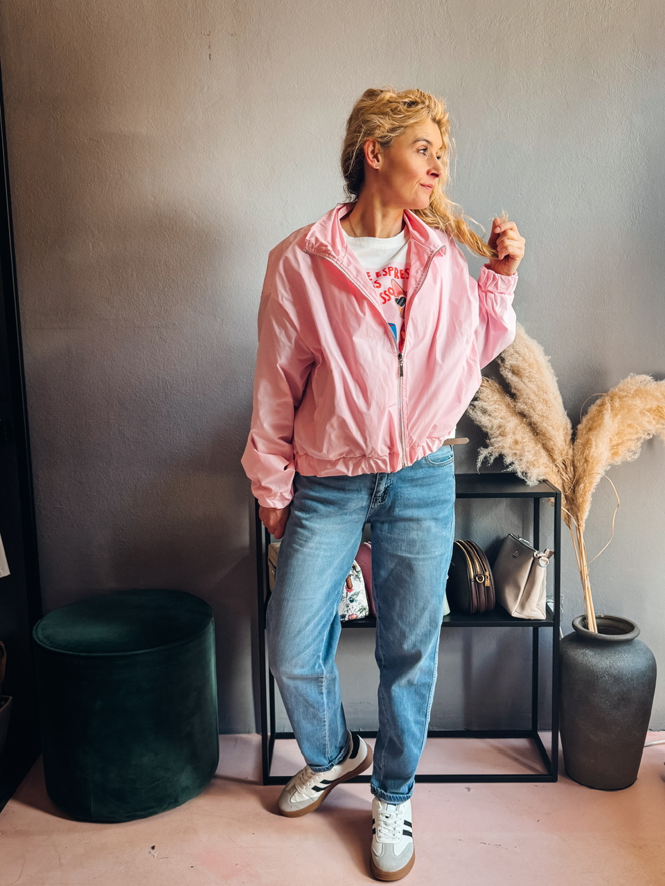 Oversize kroj tanjše jaknica z zadrgo. Širši kroj, podaljšana ramena, za konfekcijo 38-42.