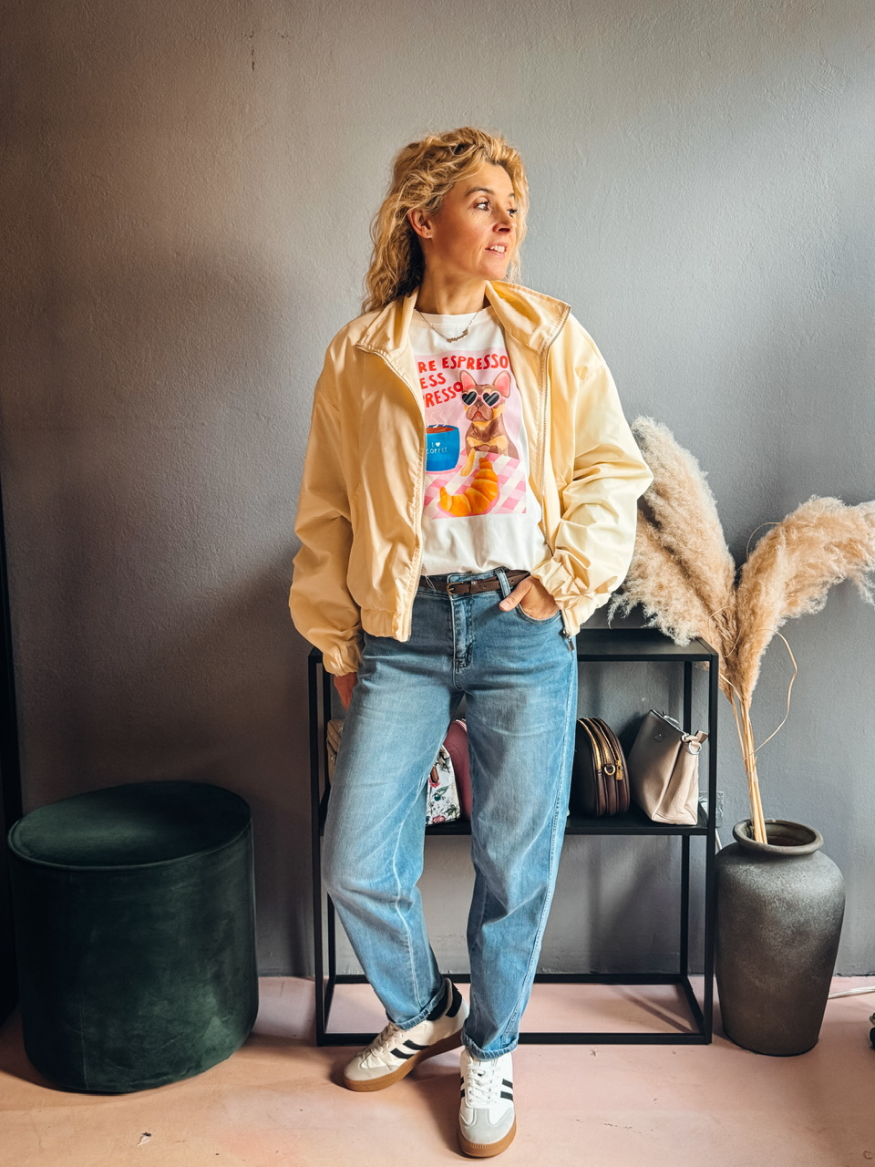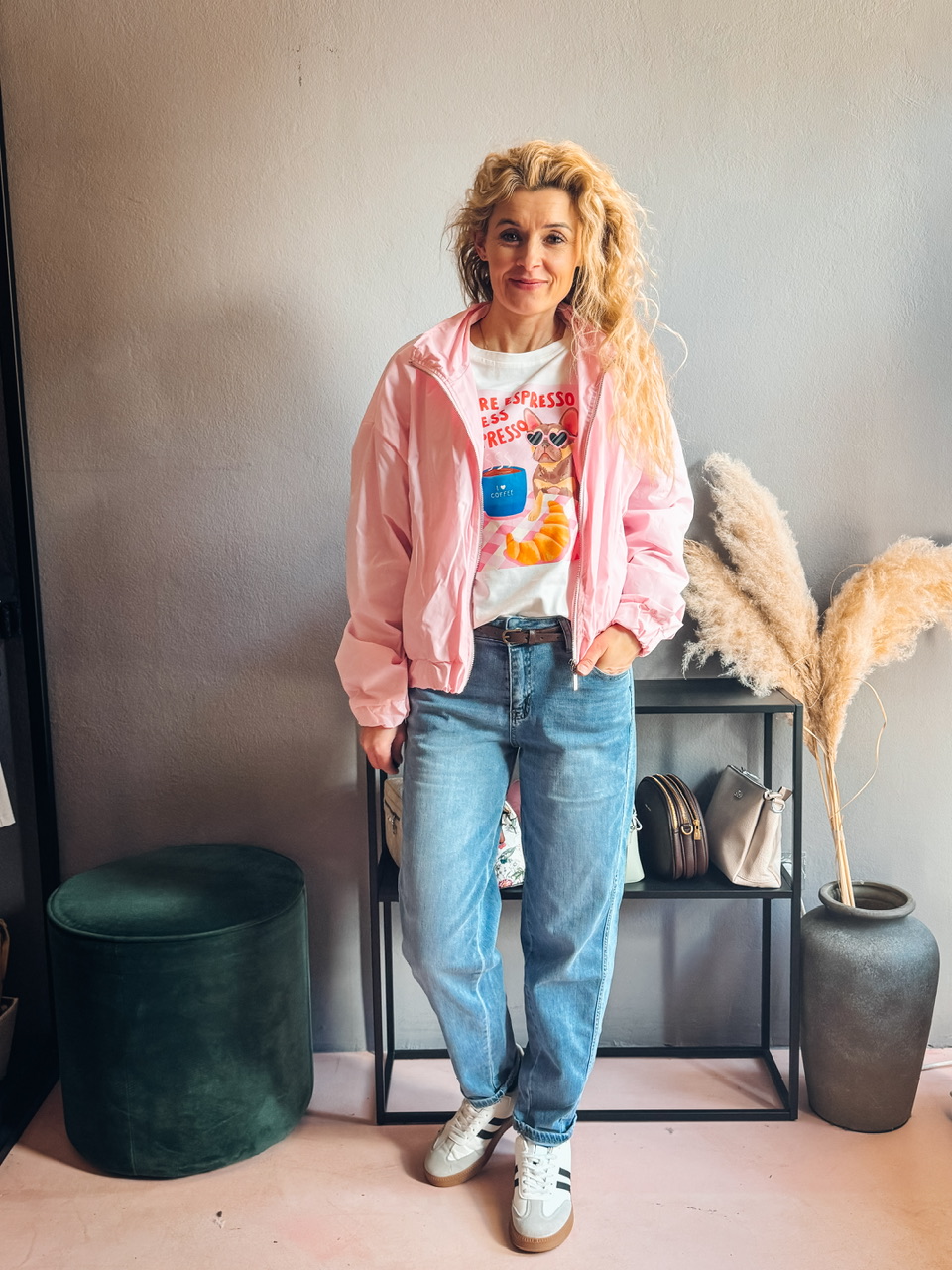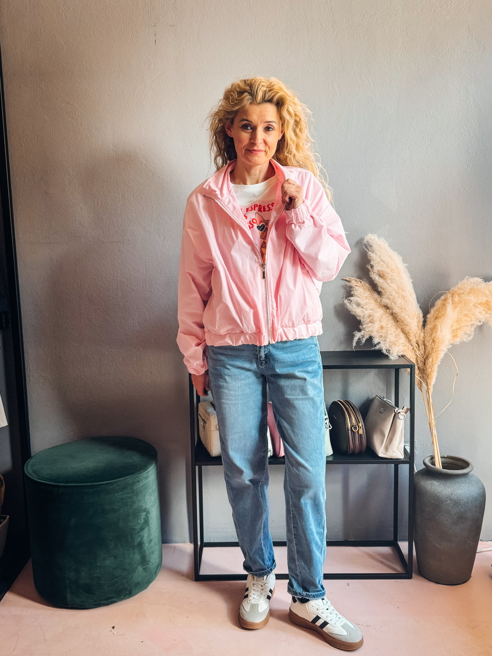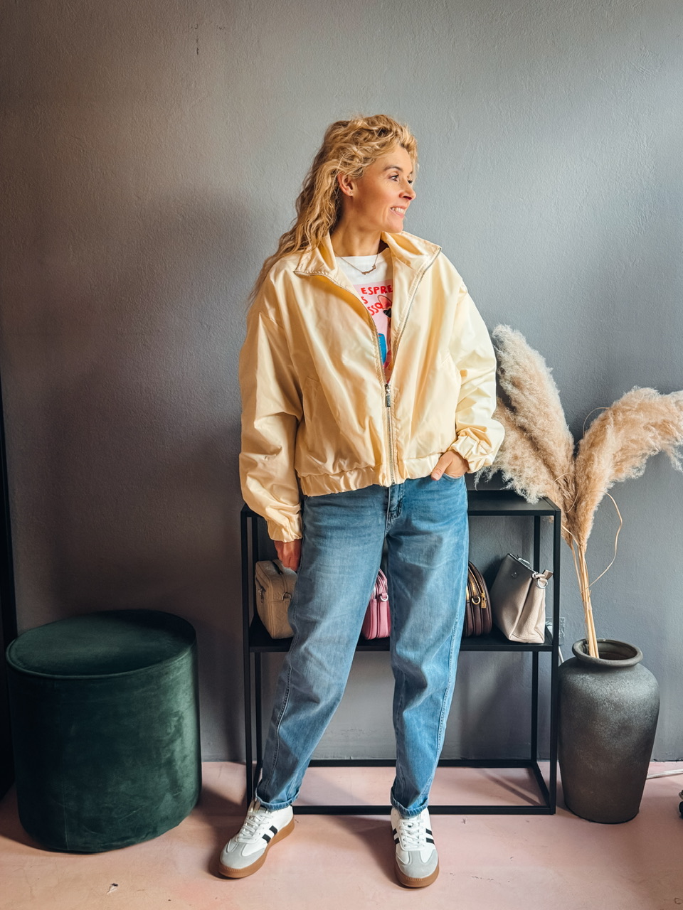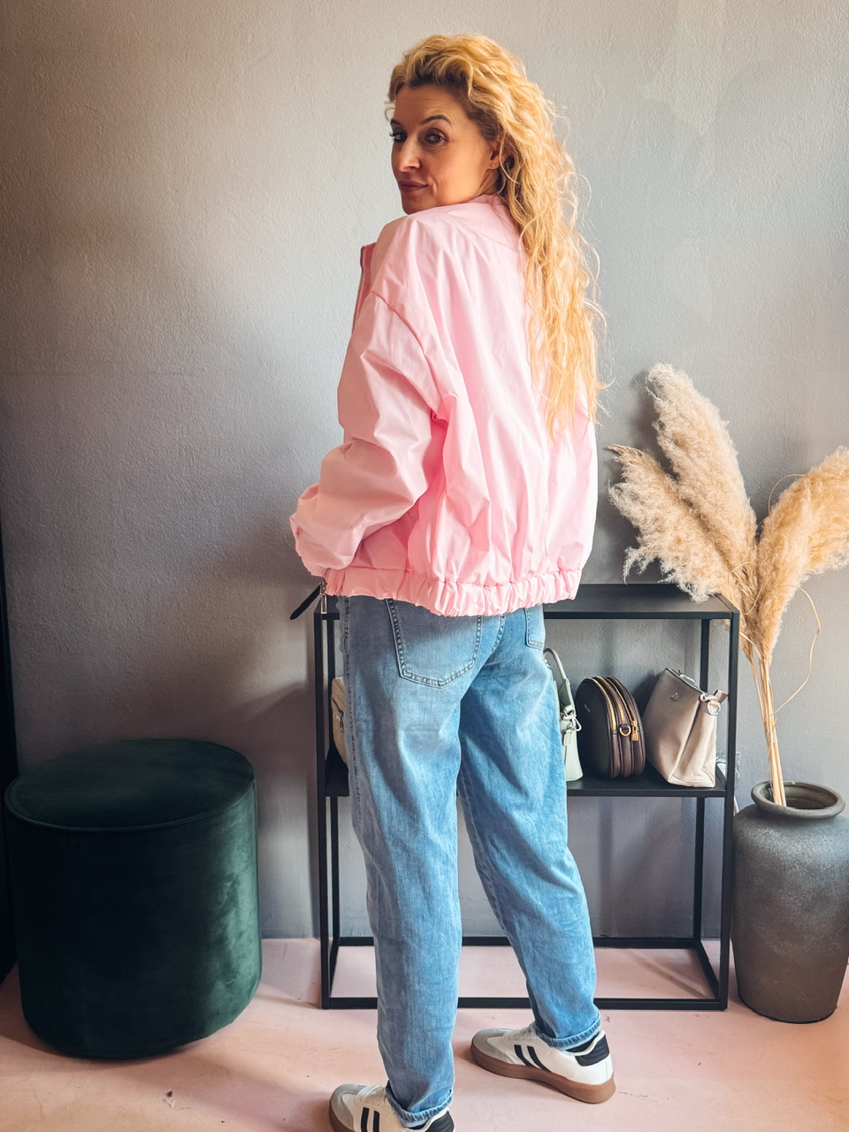Oversize kroj tanjše jaknica z zadrgo. Širši kroj, podaljšana ramena, za konfekcijo 38-42.