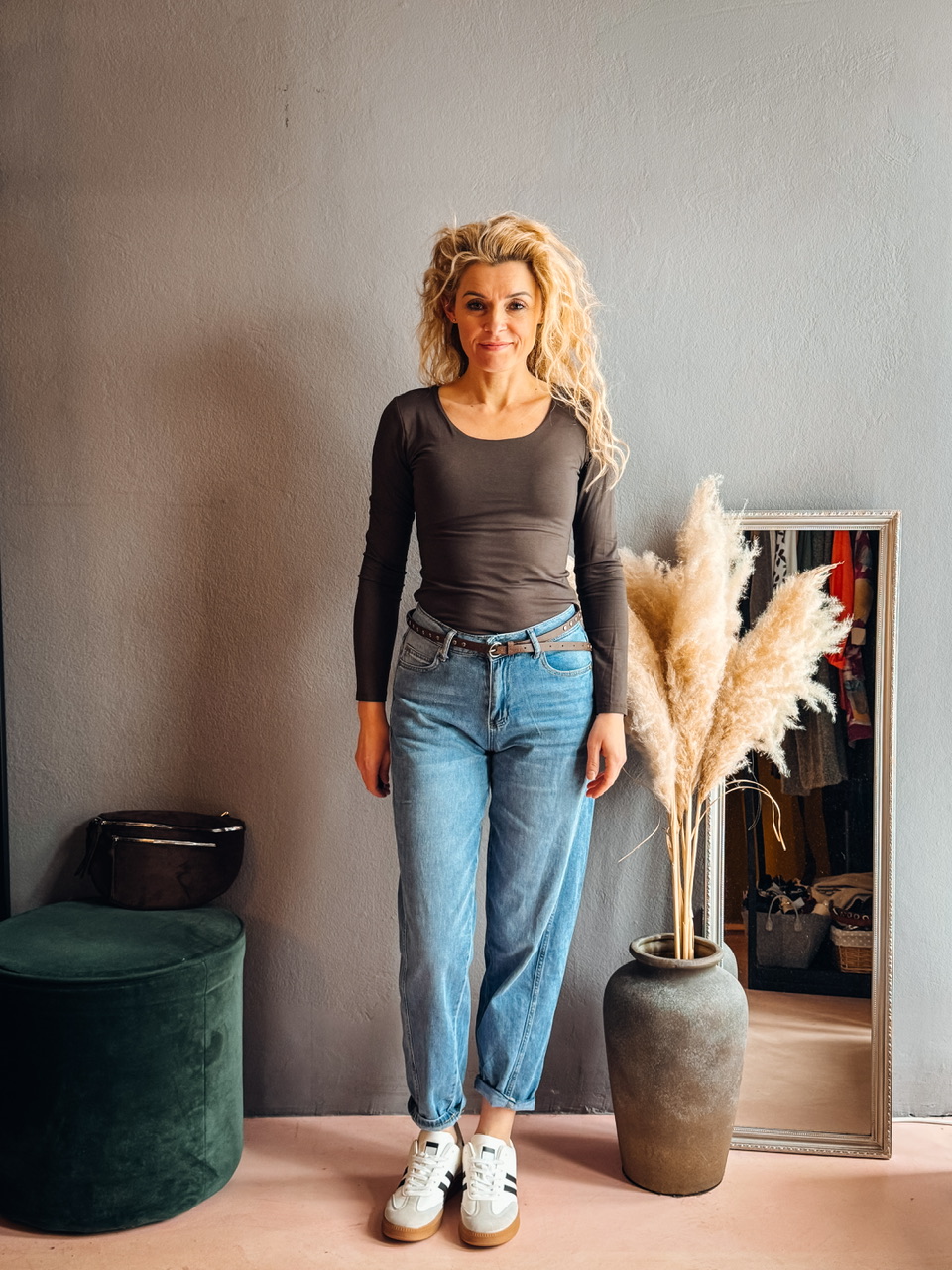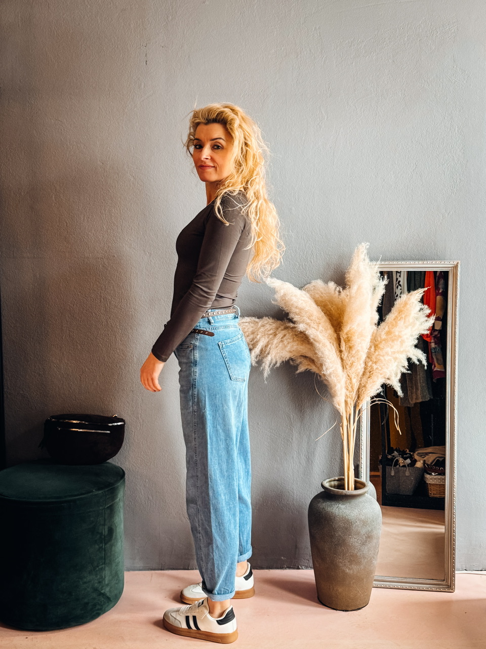 Udoben, zelo mehek mom jeans s pasom. Pri višini 170cm pridejo do gležnjev. Priporočam!