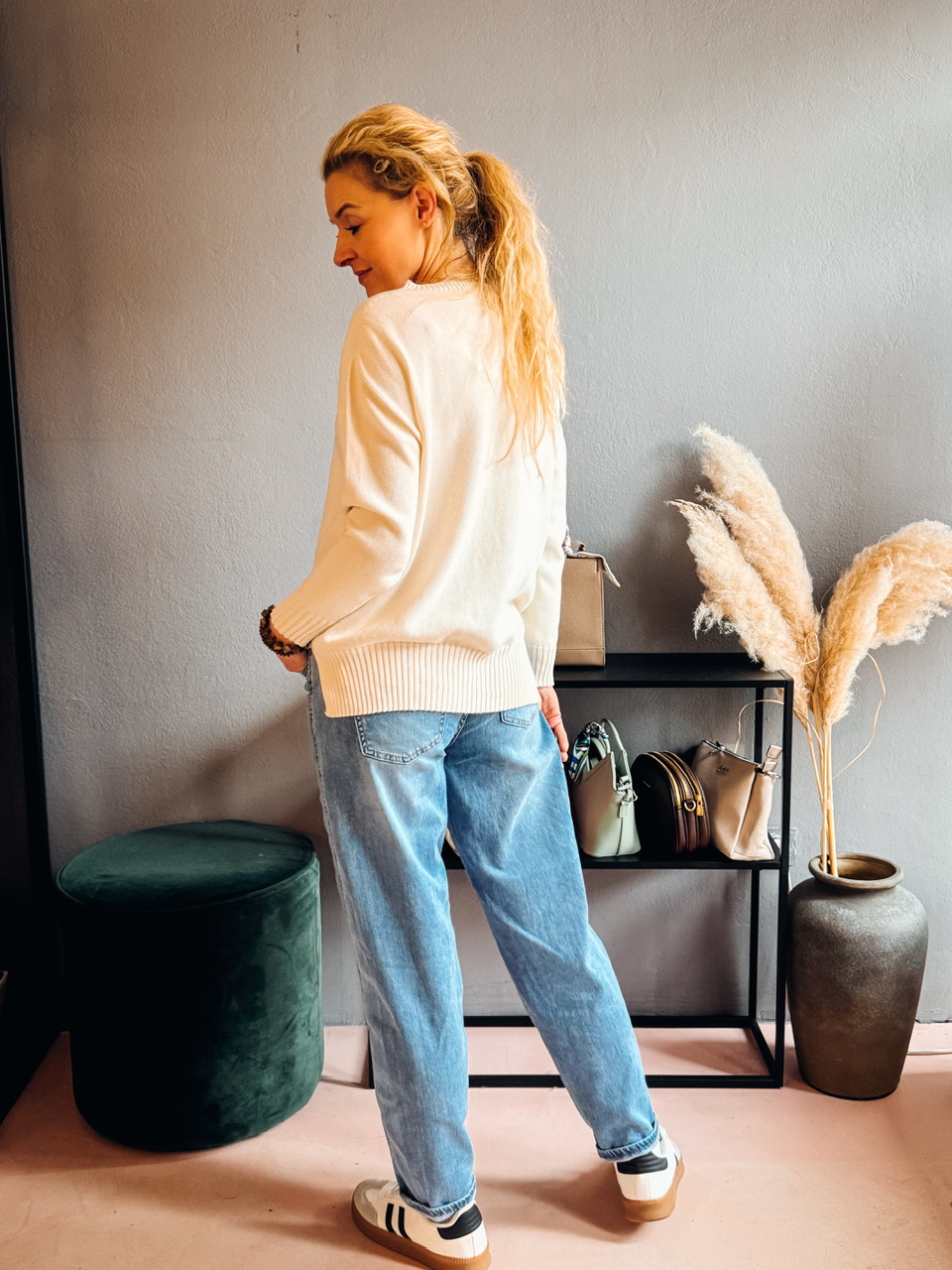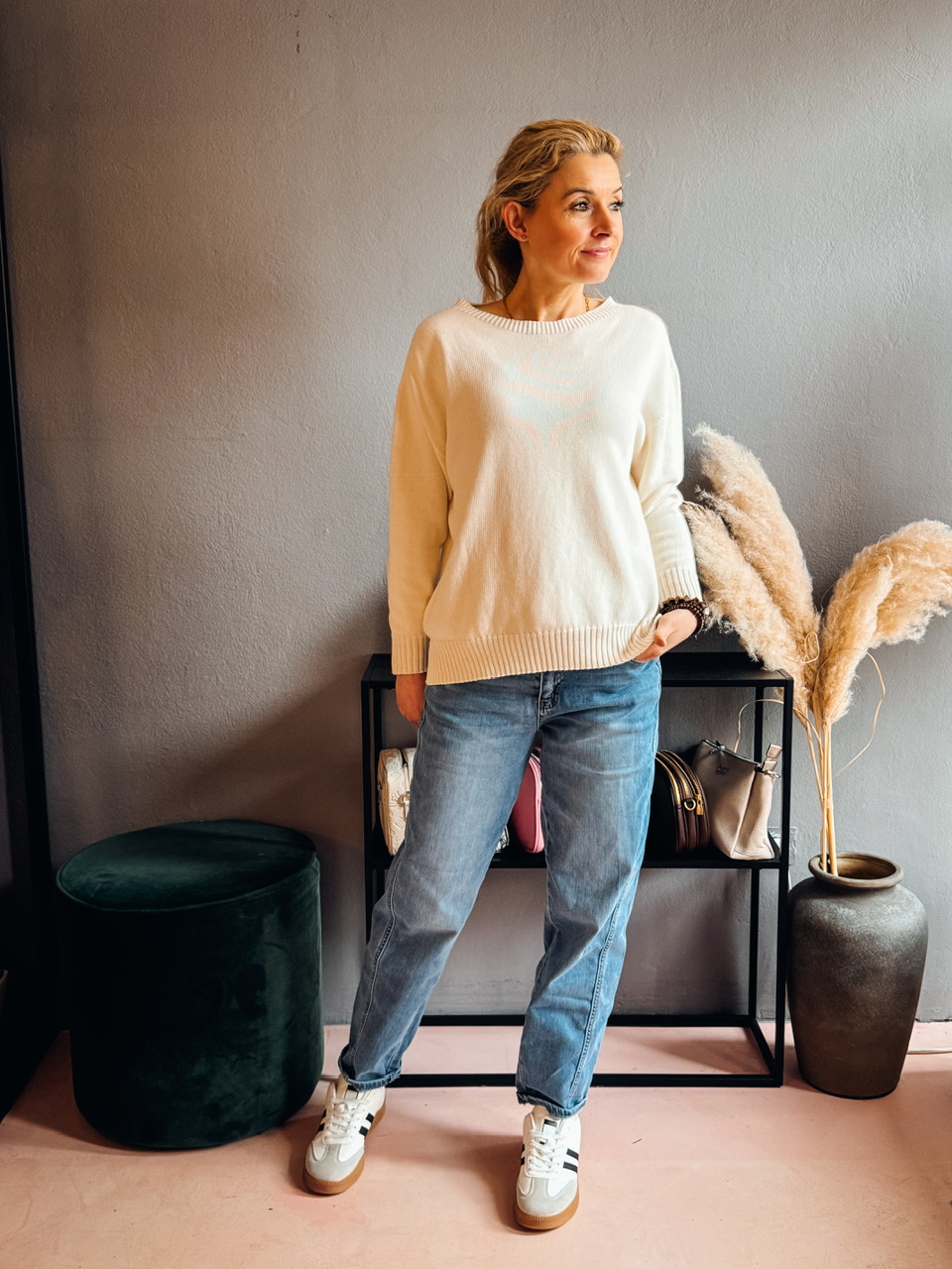 Zelo lepa pletenina, zadaj malo daljša, idealna za konfekcijo 38/40.
