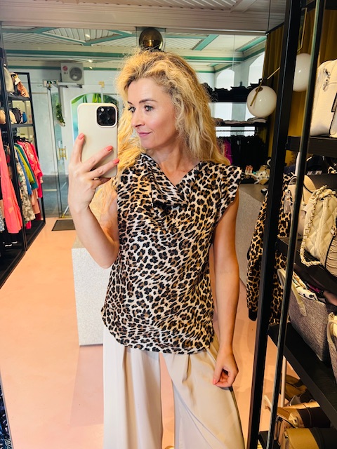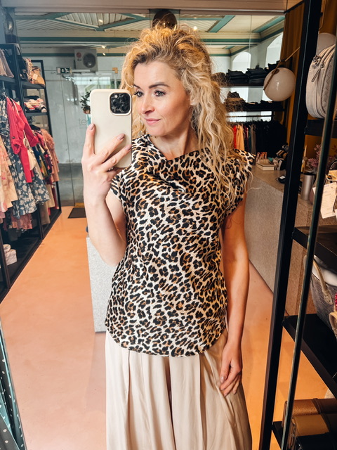 Lahkotna satenasta majica brez rokavov s padajočim prednjim delom. Velikost je uni(s-l).