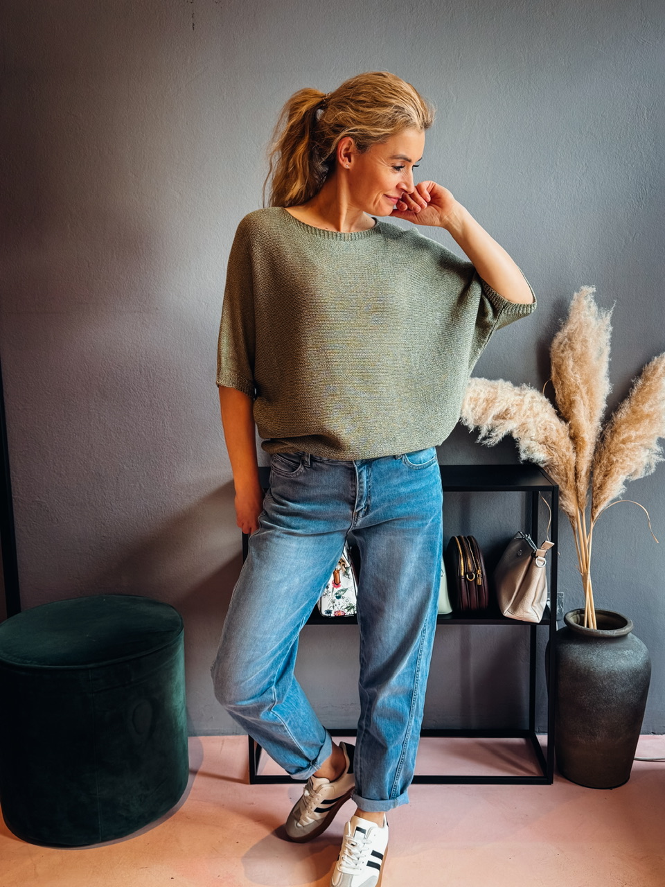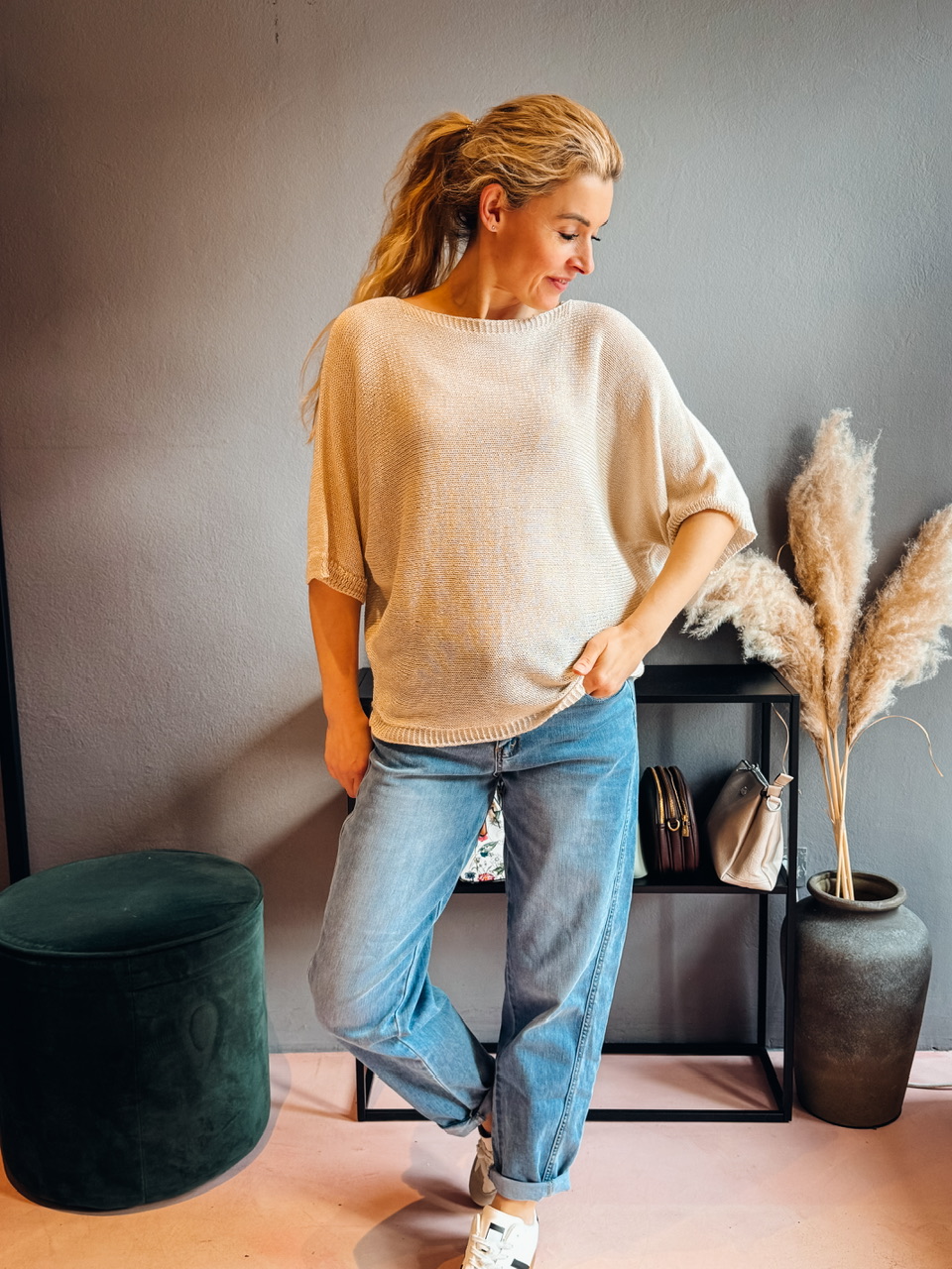 Lahkotna širša pletenina s 3/4 rokavi univerzalne velikosti(s-l).