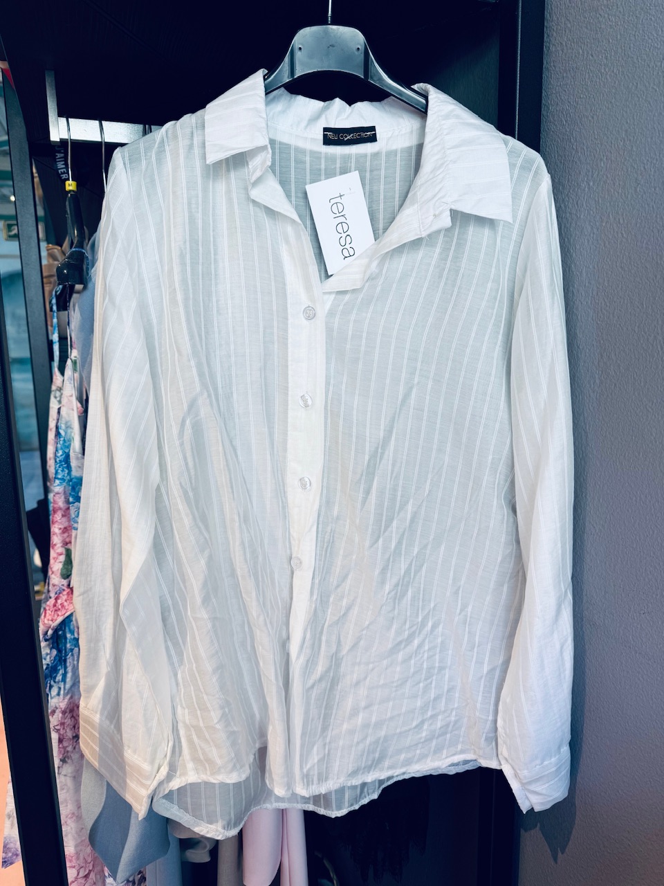 Lahkotna elegantna srajca z nežnimi črtami. Za konfekcijo 34-38, obseg čez prsi je 98cm.