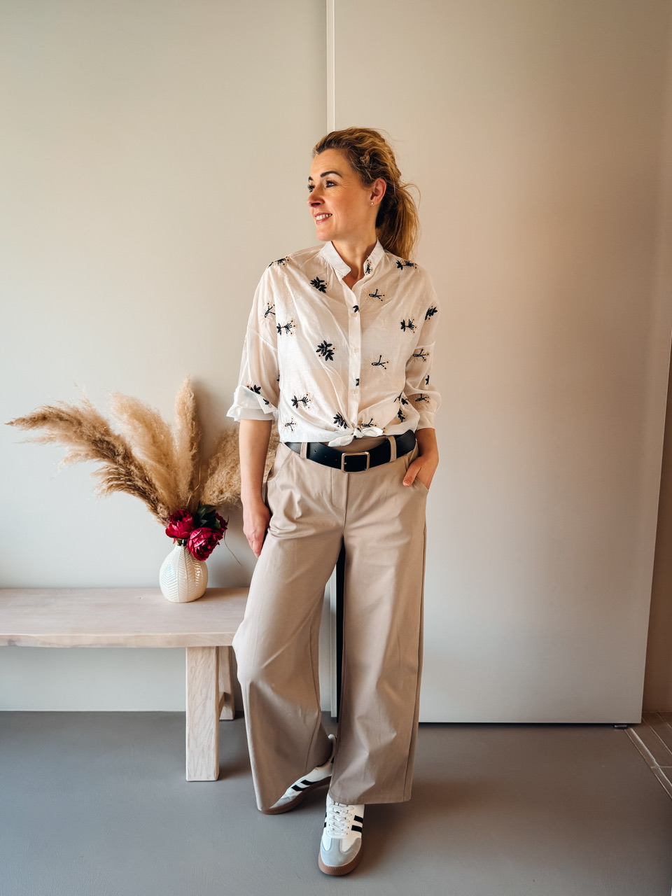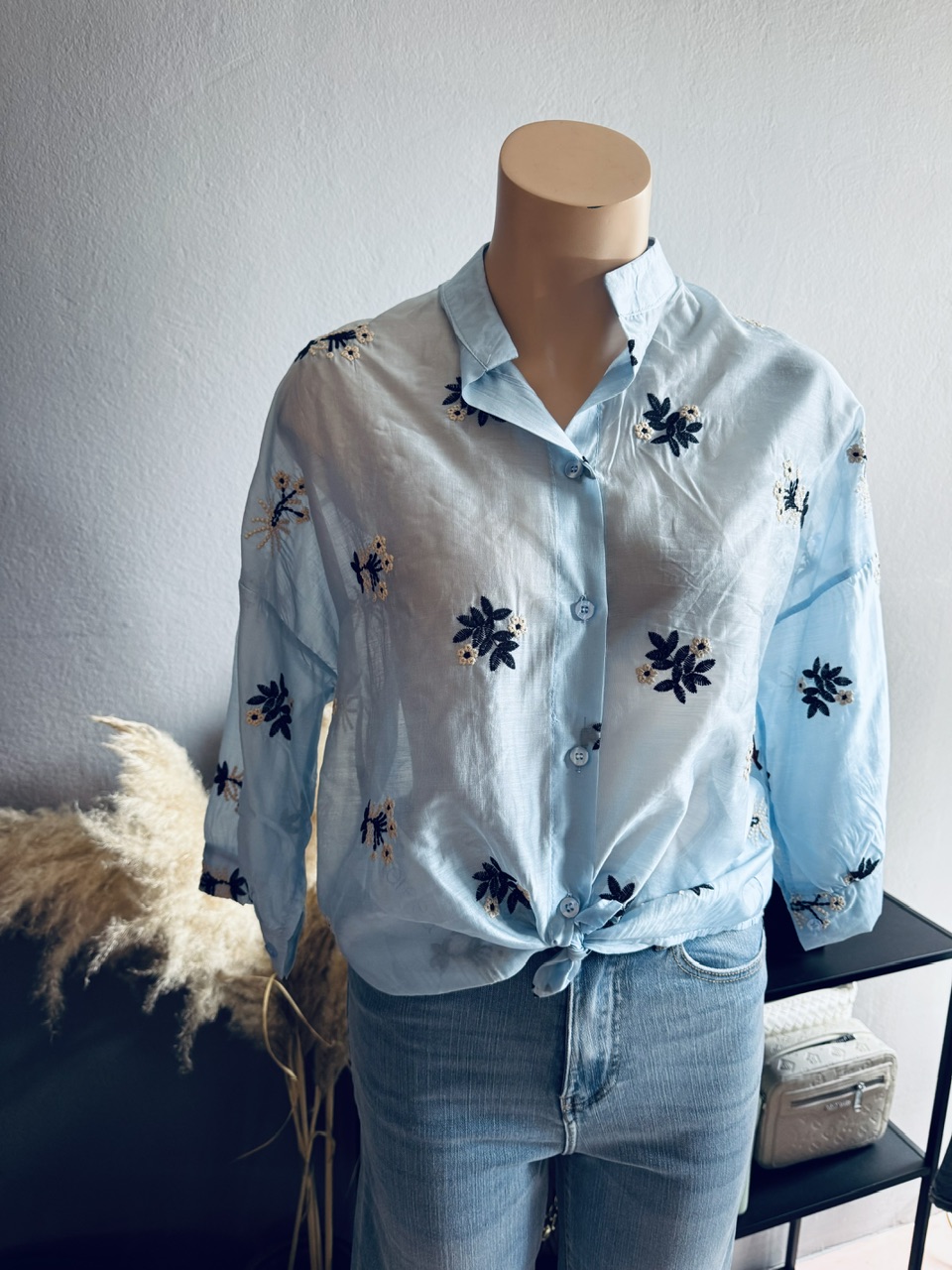 Lahkotna, rahlo prosojna bluzica z gumbi, uni velikost (s-l), 3/4 rokavi. Lahko se zaveže v pasu. Obseg prsi je 119cm.