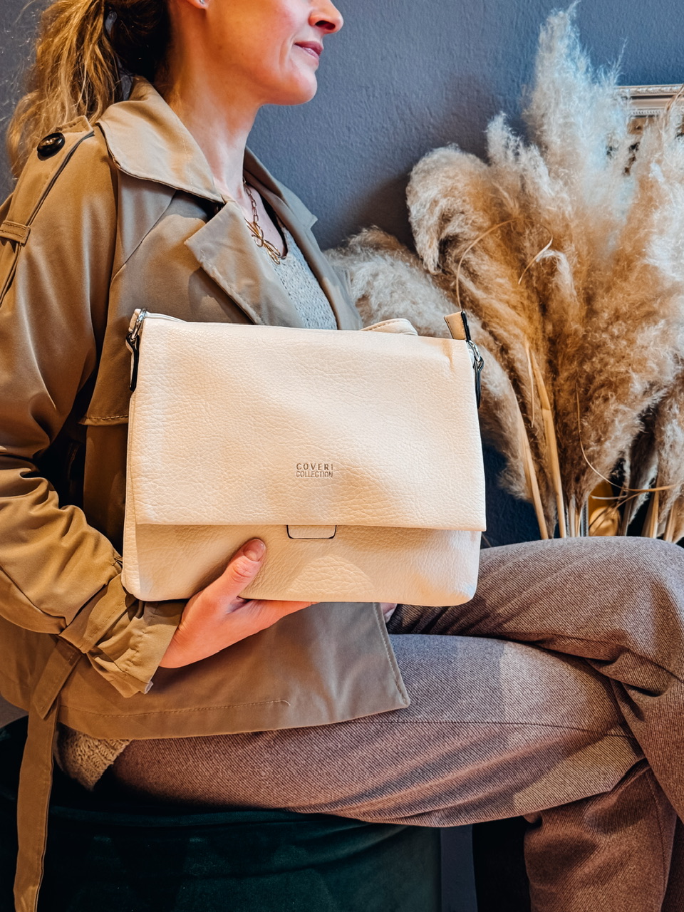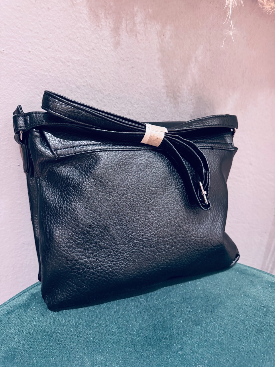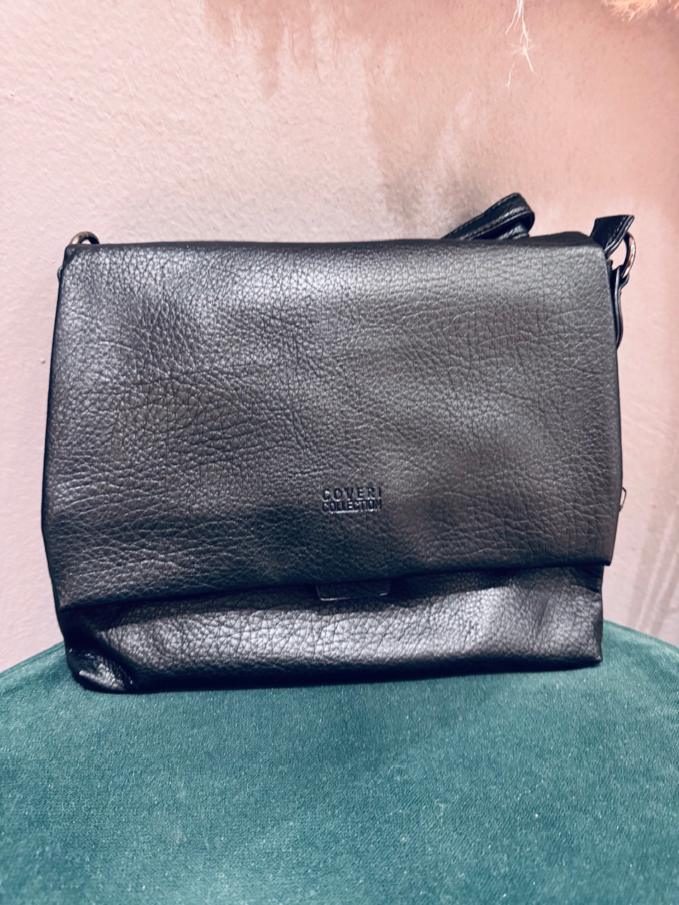 Mehka srednje velika torbica s podaljšano nastavljivo naramnico in ločenimi shranjevalnimi prostori.