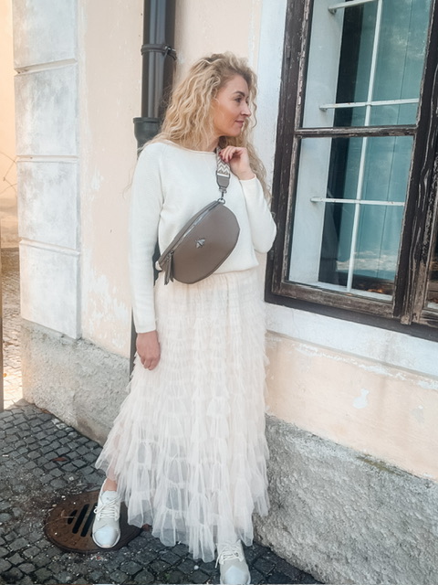 Uporabna torbica ledvička s podaljšano nastavljivo naramnico.