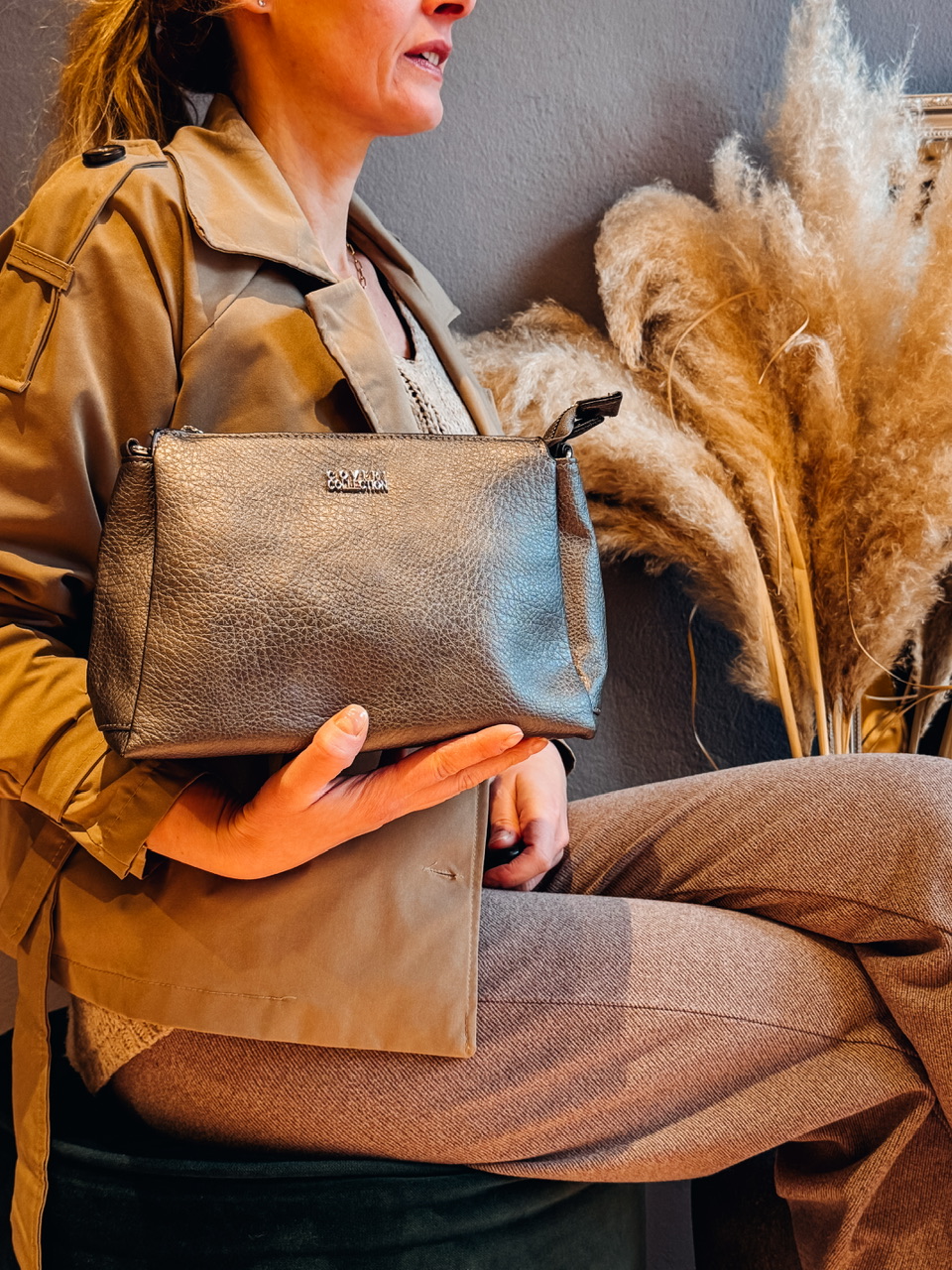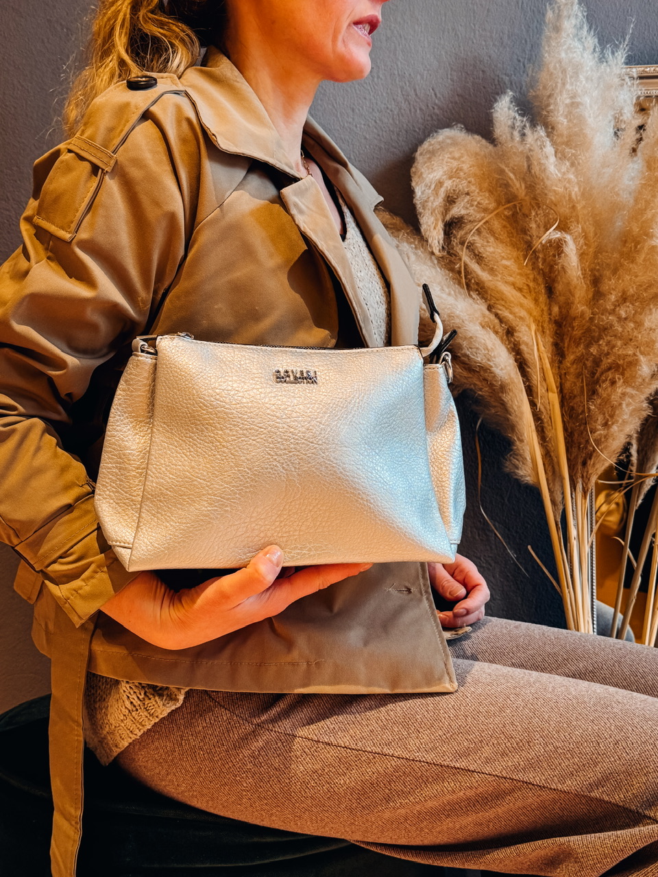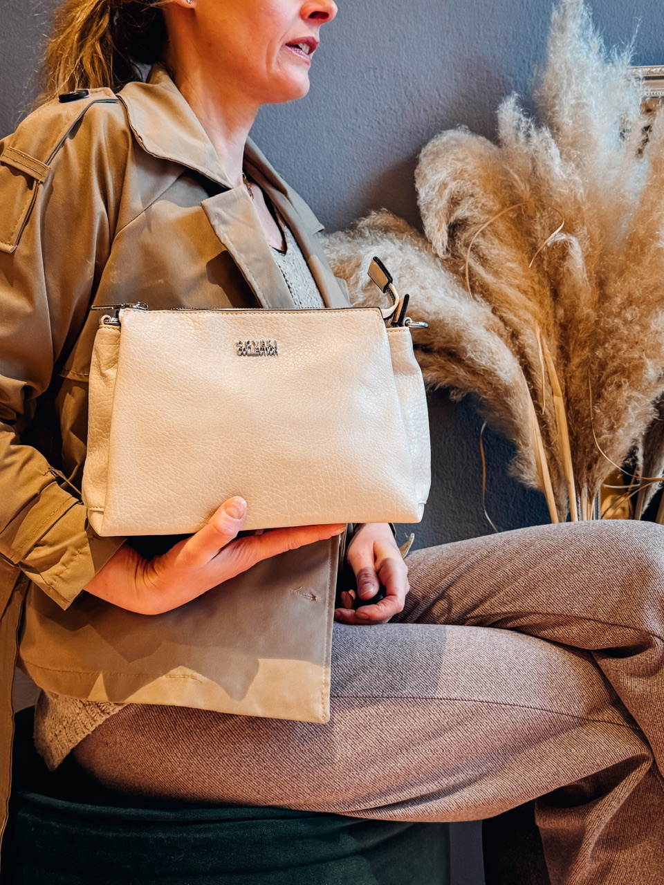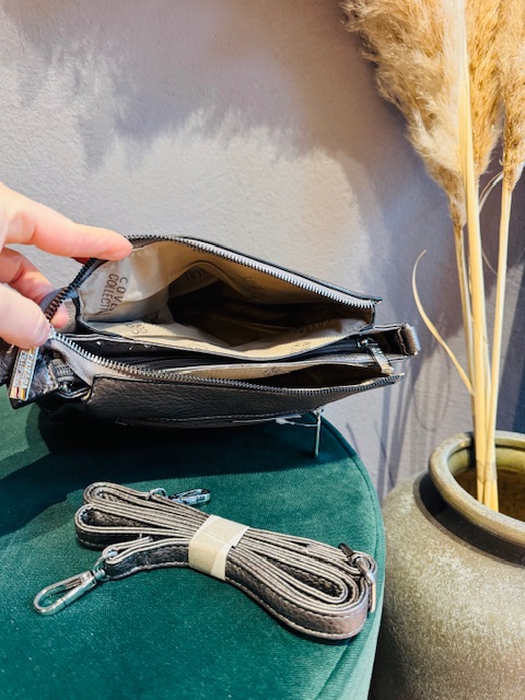 Prostorna torbica s podaljšano nastavljivo naramnico.