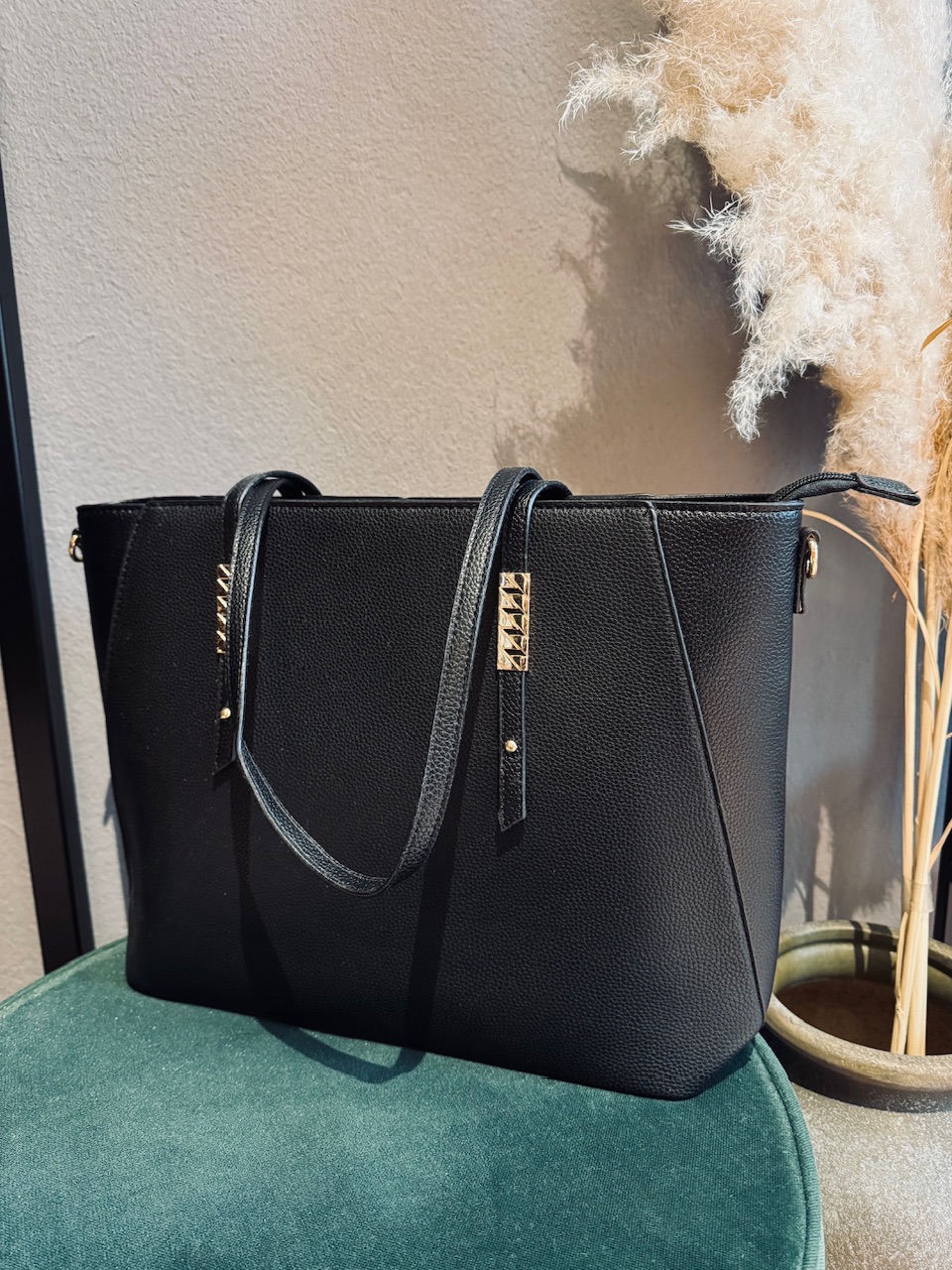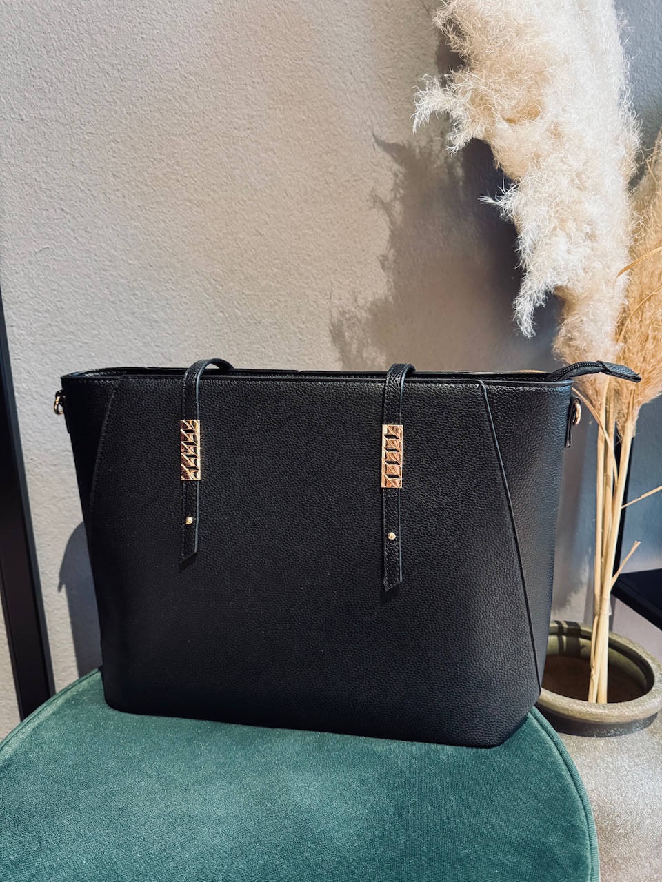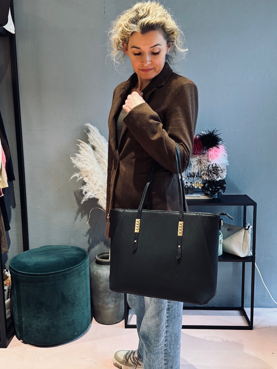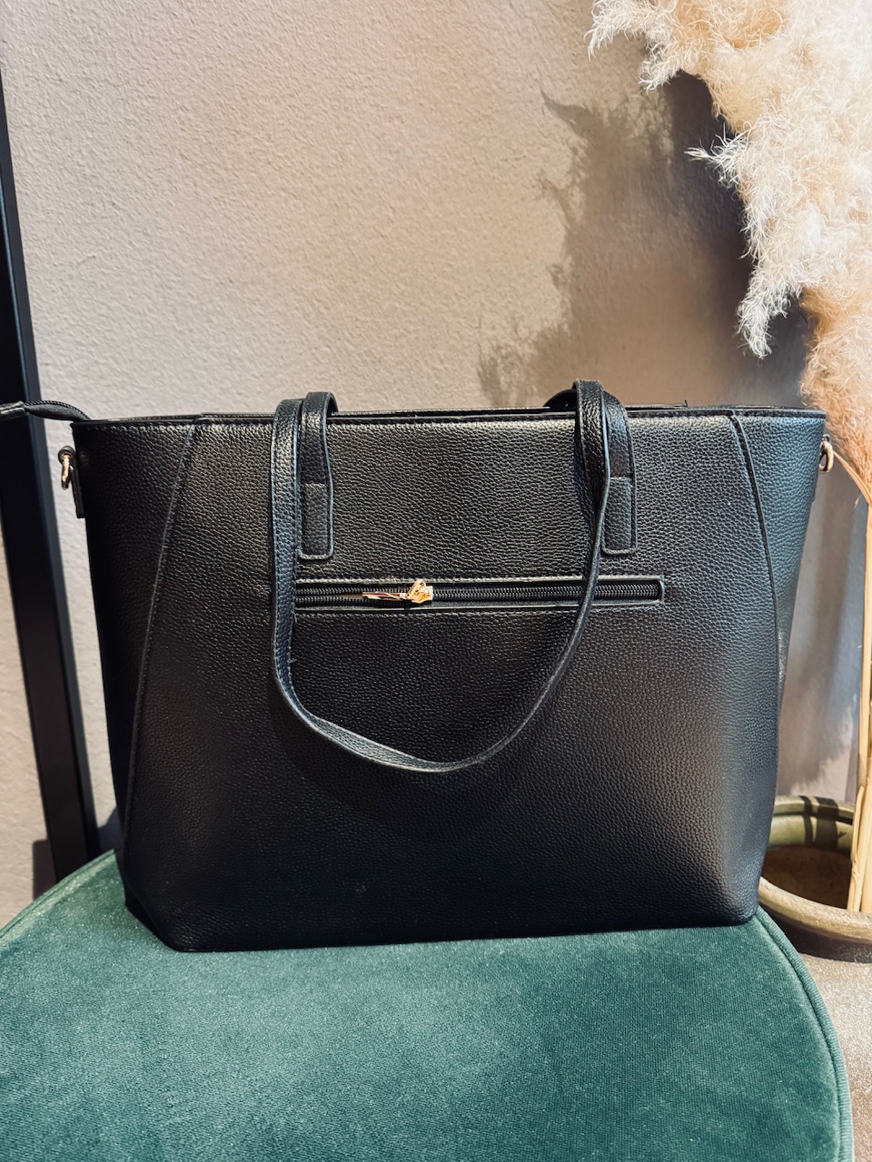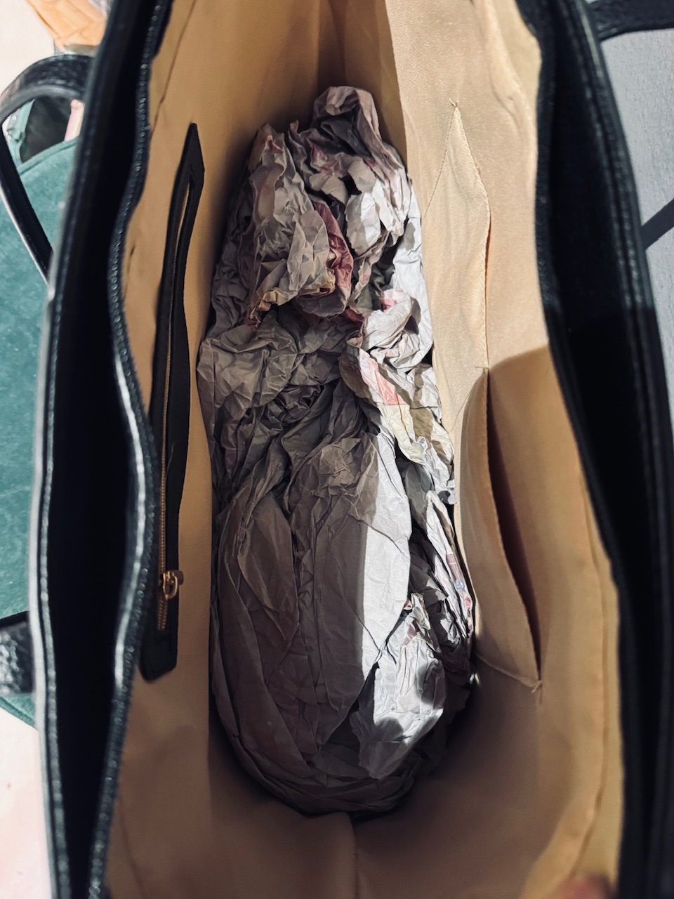 Prostorna večja torbica z ročajema, ima ločene shranjevalne prostore. Velikost cca.a3.