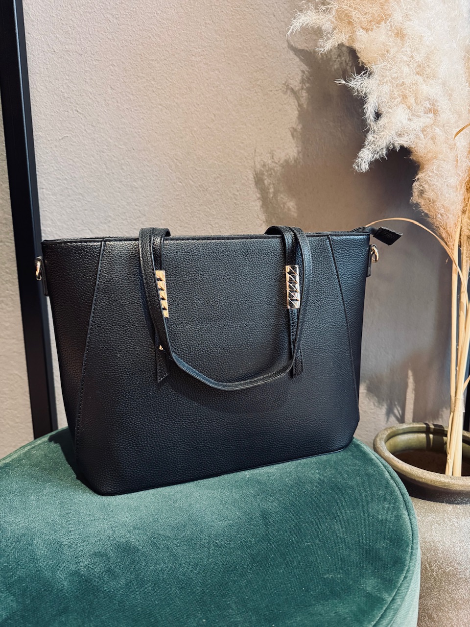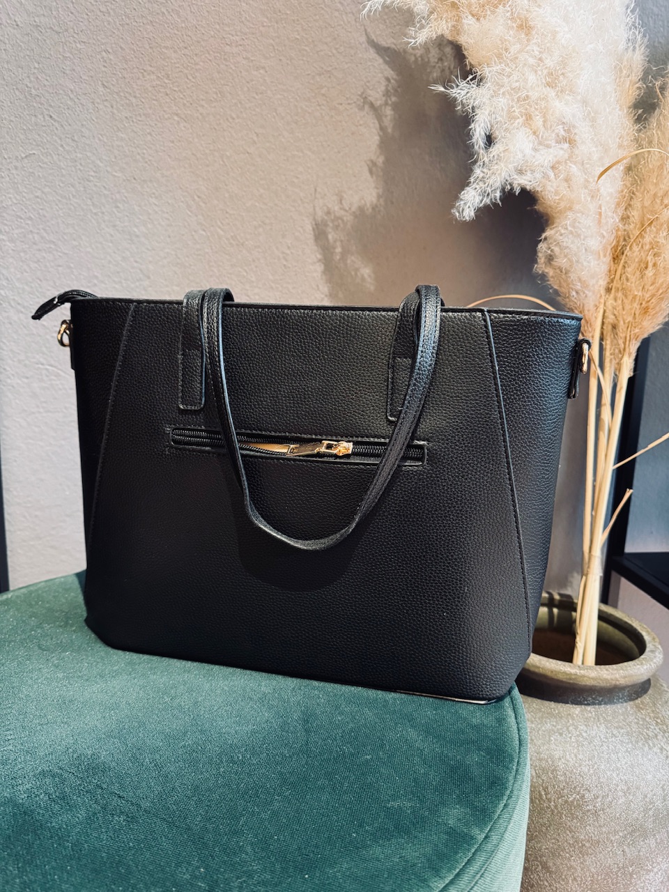 Prostorna črna torbica z ročajema, velikost cca.a4.