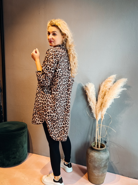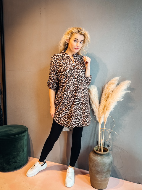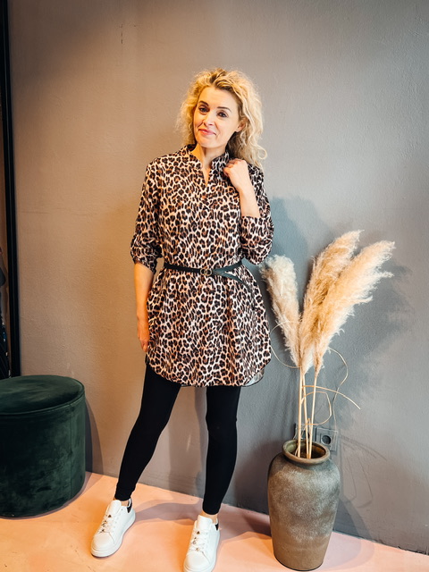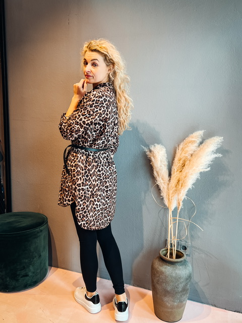 Lahkotna tunika s paskom, zadaj daljša. Velikost je uni(38-42). Lahko jo teliraš ali nosiš sproščeno.